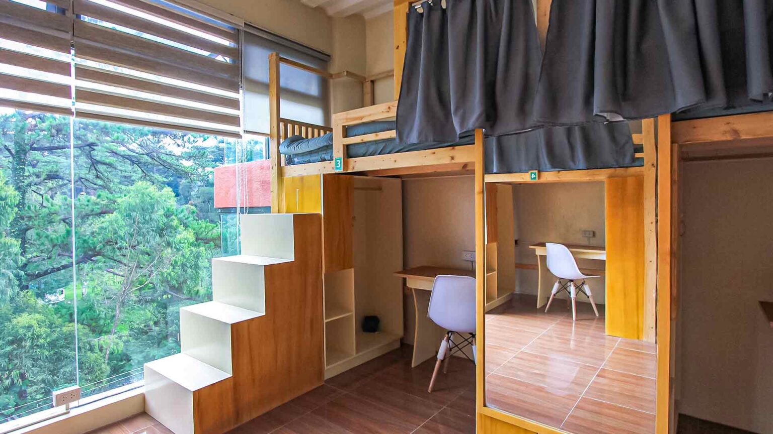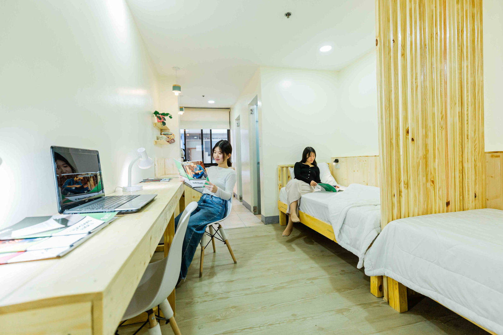 파인스 어학원 기숙사는 다양한 형태로 운영되고 있습니다. 1인실, 2인실, 4인실, 6인실 등 여러 종류가 있으며 학생들의 예산과 선호도에 따라 선택할 수 있습니다. 특히 6인실은 벙커형 구조로 설계되어 다인실 형태이지만 개인 공간이 확보되어 있어 비교적 저렴한 비용으로 이용할 수 있는 기숙사 옵션으로 인기가 높은편입니다.